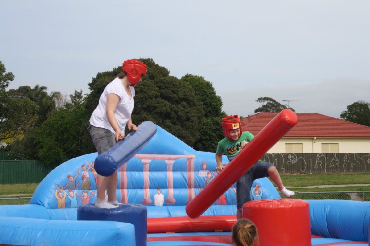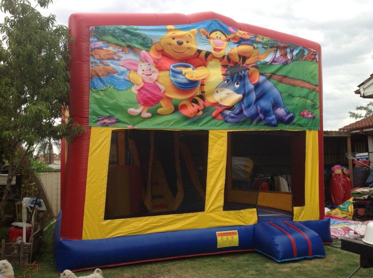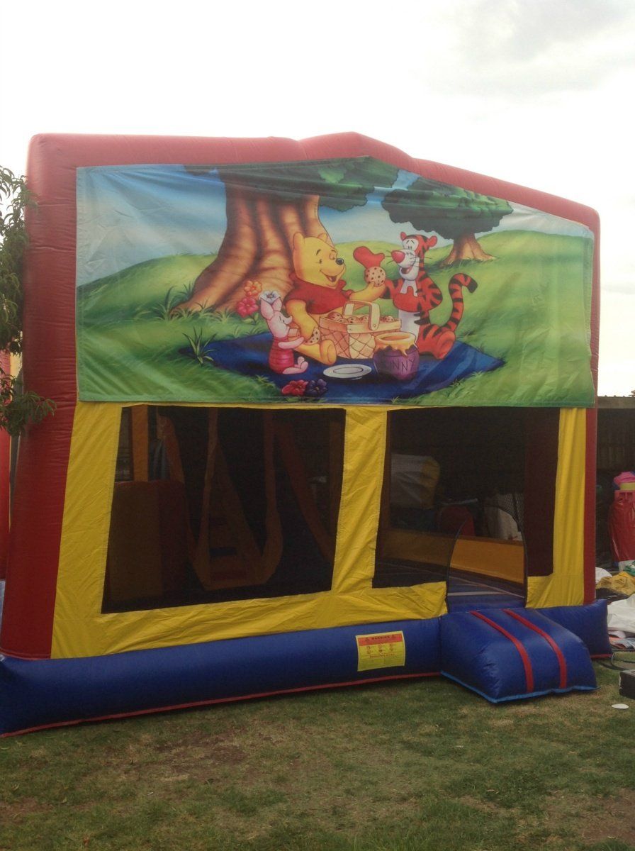WINNIE POO CLIMBING WALL POP UPS BASKETBALLHOOP 4X3M AGES 12 & UNDER