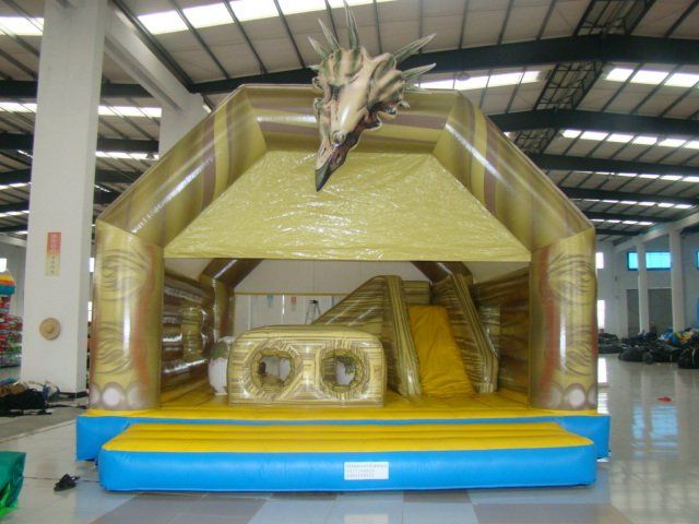 ButtonCartoon dinosaur 5in1 combo with slide pop ups basketball hoop obstacles tunnel 5x5m