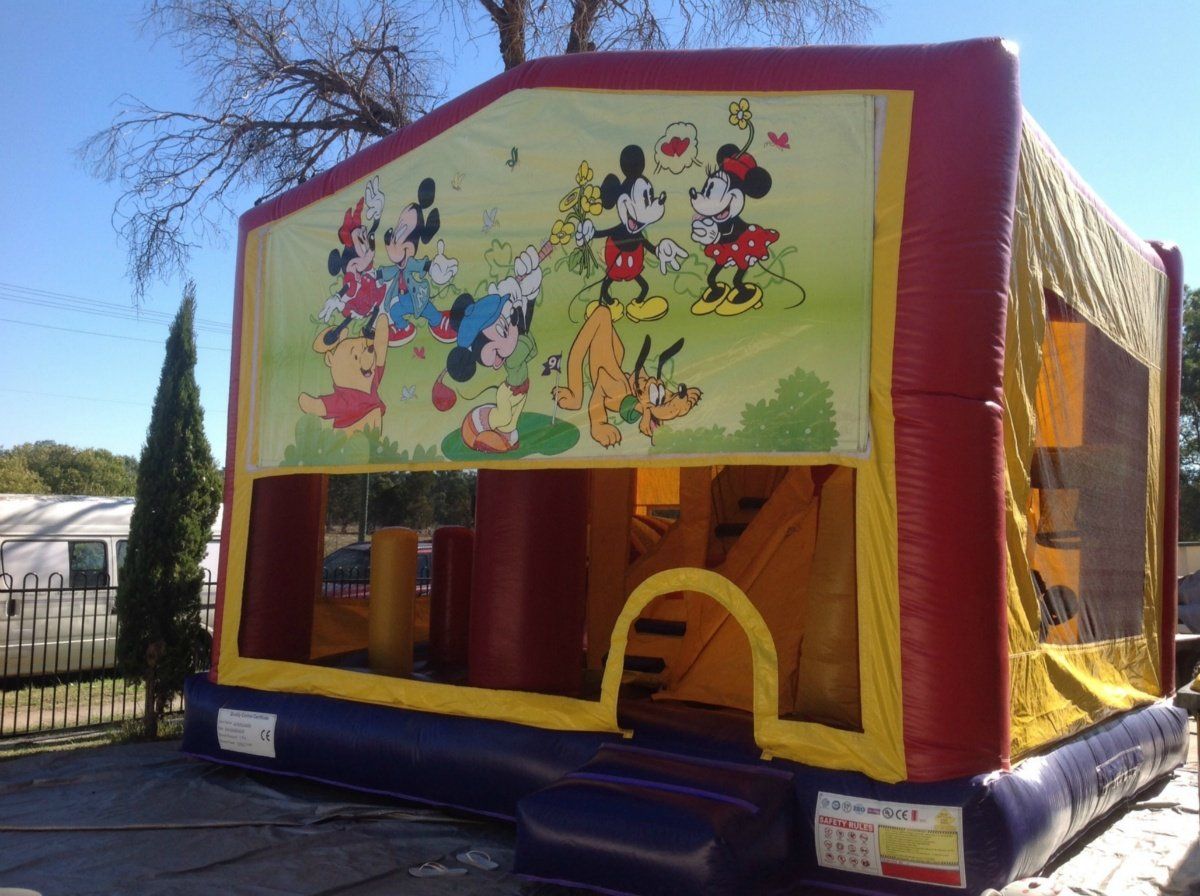MICKY MOUSE 5 IN 1 COMBO WITH SLIDE POP UPS BASKETBALL HOOP AND OBSTACLE SIZE 5X5 M
